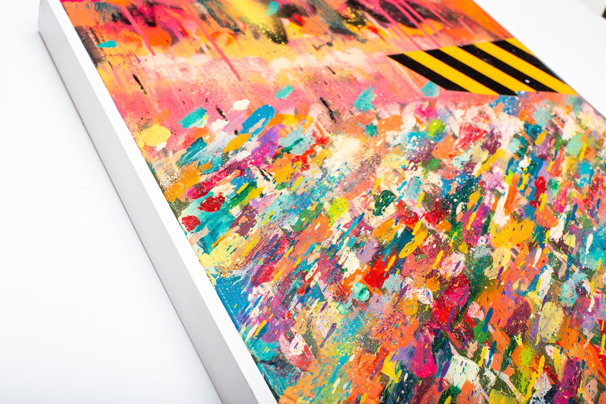 A one-off experimental abstract expressionism mixed media painting. Bursting with vibrant colour and dynamic composition, this piece transforms adds vibrant energy into any space as a focal point. Layered textures and bold hues create visual depth that draws the eye and sparks conversation. Perfect for collectors and art enthusiasts seeking contemporary work that commands attention and elevates interior design with authentic creative vision.